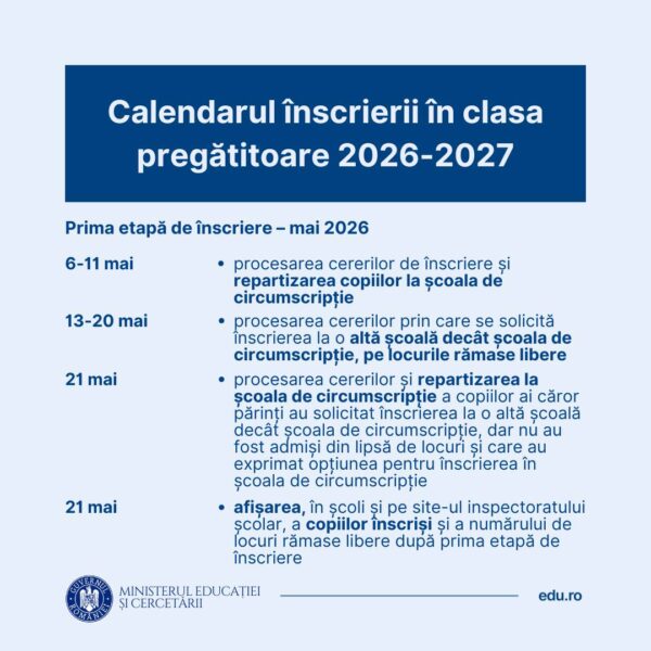 Calendar înscriere în clasa pregătitoare